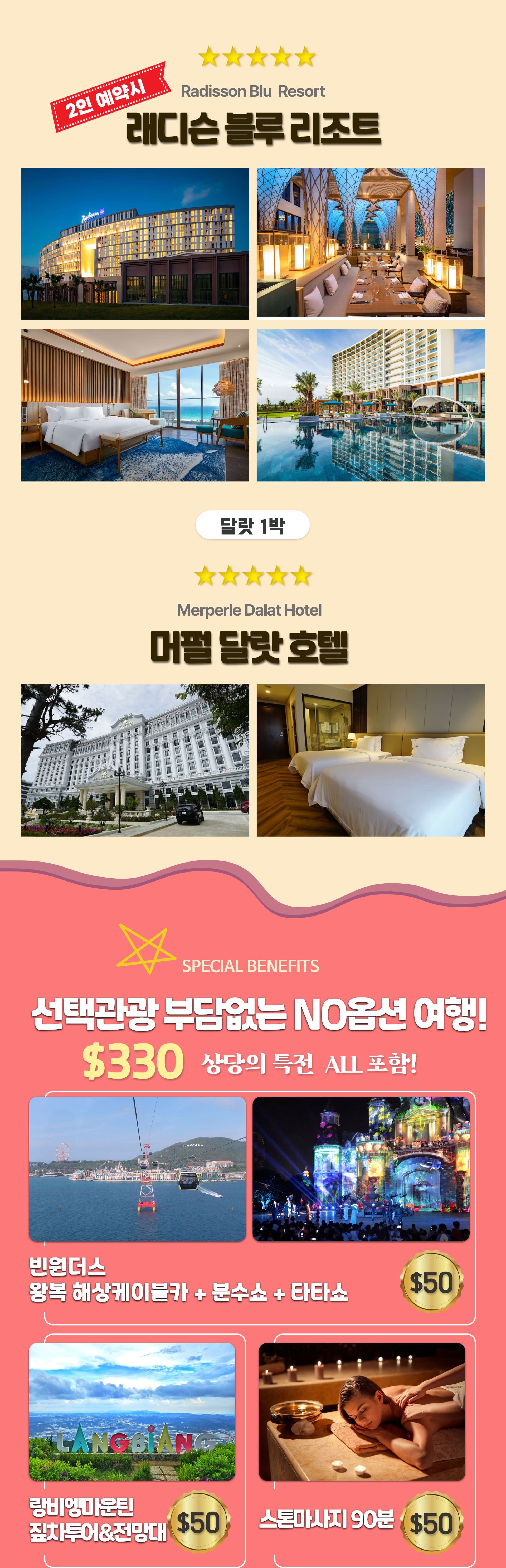 [2/25 선발권특가♥NO옵션+$330상당특전+월드체인 2박] 나트랑/달랏 5일 #4인/6인예약시 풀빌라업그레이드#빈원더스케이블카#타타쇼#스톤마사지